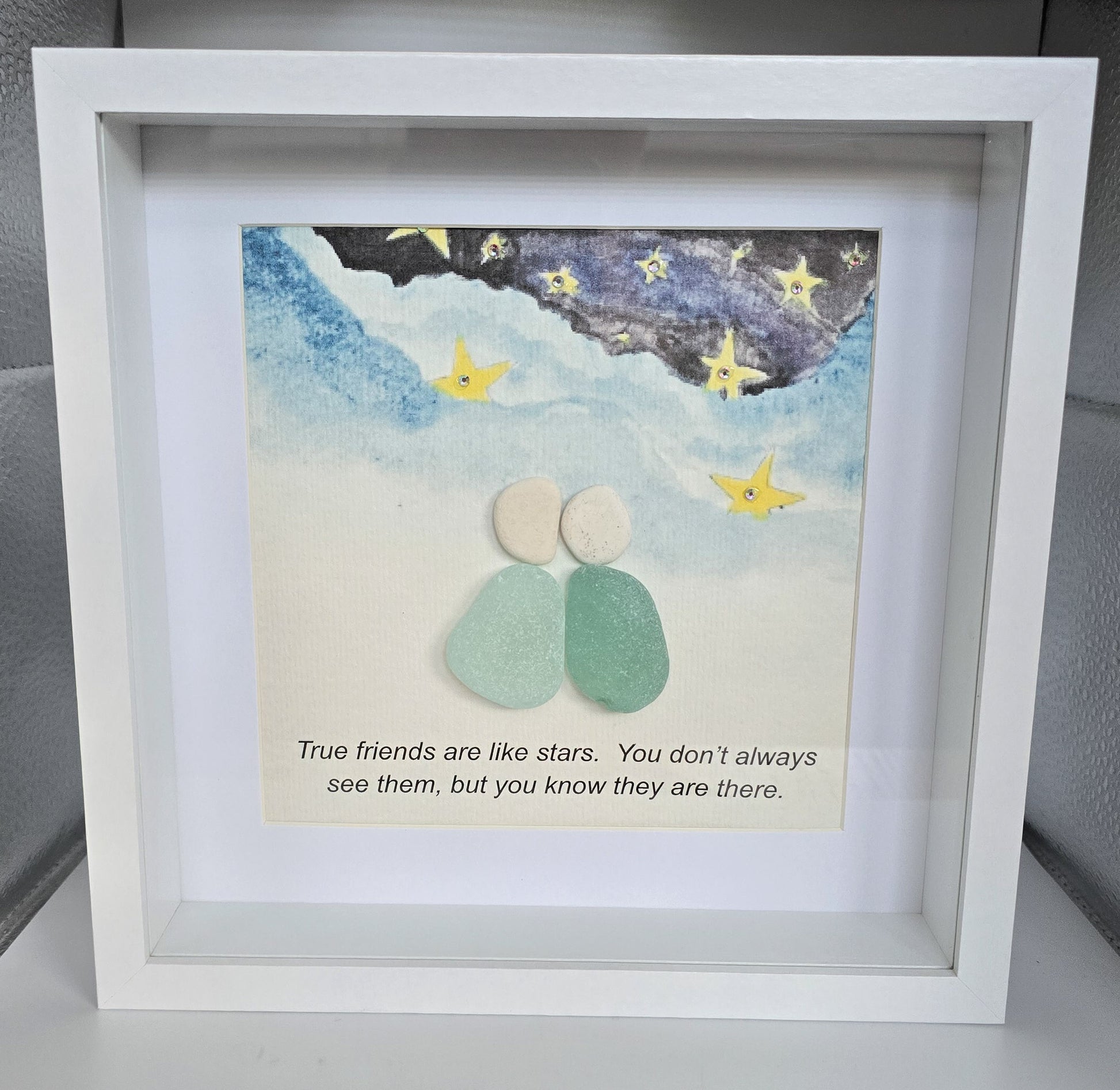 5x5 shadowbox with genuine sea glass art. You can personalize it with names and add a message.